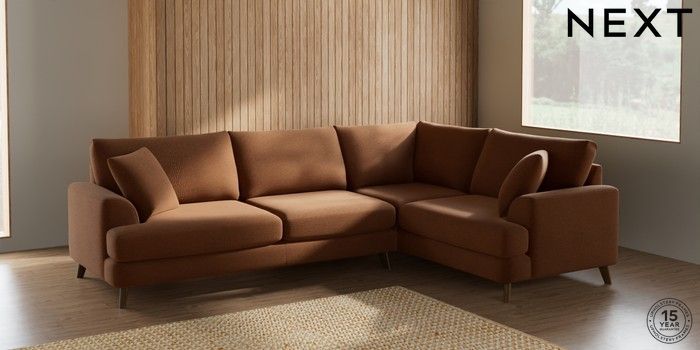 7.2.5 Buy Parker Large Corner Sofa - Right Hand Ripple Chenille Mid Rust Brown Low Retro Tapered - Mid from the Next UK online shop Click here to use our accessible website