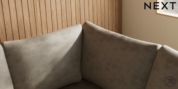 7.2.10 Buy Parker Large Corner Sofa - Right Hand Monza Faux Leather Easy Clean Mink Brown High Metal - Chrome from the Next UK online shop Click here to use our accessible website