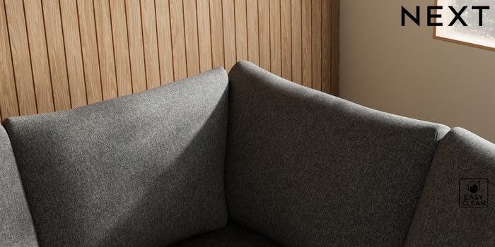 7.2.10 Buy Parker Large Corner Sofa - Right Hand Tweedy Blend Easy Clean Dark Grey Low Retro Tapered - Mid from the Next UK online shop Click here to use our accessible website