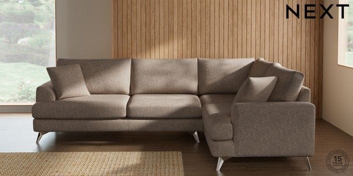 7.3.1 Buy Parker Large Corner Sofa - Right Hand Tweedy Chenille Mid Natural High Metal - Chrome from the Next UK online shop Click here to use our accessible website