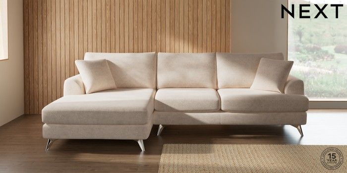 7.2.10 Buy Parker Large Sofa Chaise - Left Hand Boucle Chenille Oyster High Metal - Chrome from the Next UK online shop Click here to use our accessible website