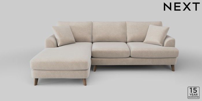 6.12.1 Buy Parker Large Sofa Chaise - Left Hand Boucle Chenille Oyster Low Retro Tapered - Mid from the Next UK online shop Click here to use our accessible website