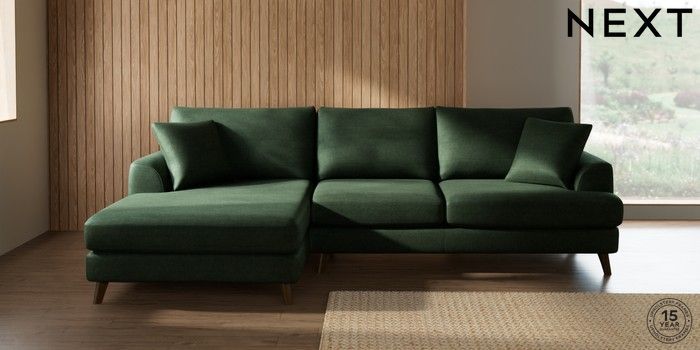 7.3.1 Buy Parker Large Sofa Chaise - Left Hand Luxe Chenille Dark Green Low Retro Tapered - Mid from the Next UK online shop Click here to use our accessible website
