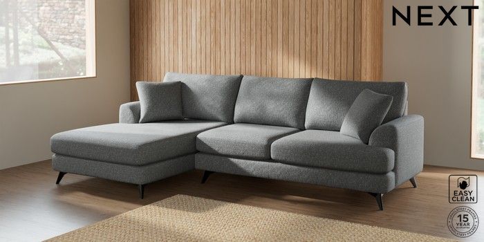 7.2.5 Buy Parker Large Sofa Chaise - Left Hand Chunky Boucle Easy Clean Mid Grey High Metal - Black from the Next UK online shop Click here to use our accessible website