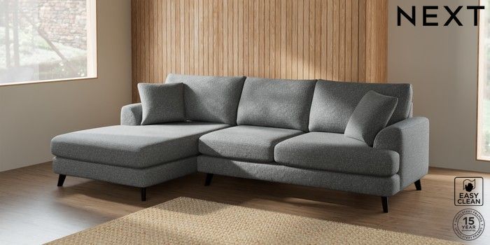 7.2.5 Buy Parker Large Sofa Chaise - Left Hand Chunky Boucle Easy Clean Mid Grey Low Retro Tapered - Dark from the Next UK online shop Click here to use our accessible website