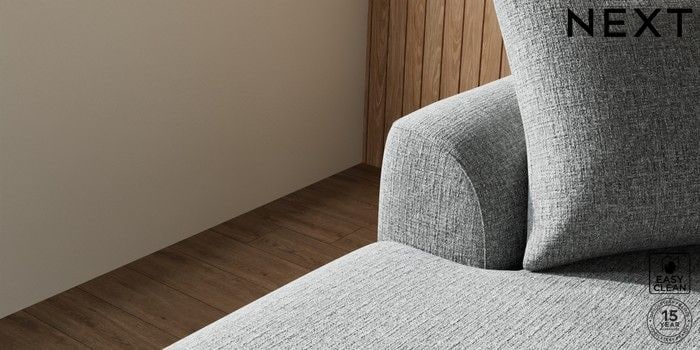 7.2.10 Buy Parker Large Sofa Chaise - Left Hand Chunky Boucle Easy Clean Mid Grey Low Retro Tapered - Dark from the Next UK online shop Click here to use our accessible website