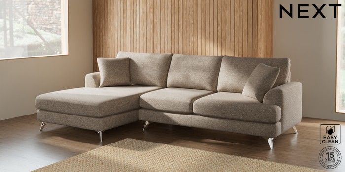 7.2.5 Buy Parker Large Sofa Chaise - Left Hand Chunky Boucle Easy Clean Mid Natural High Metal - Chrome from the Next UK online shop Click here to use our accessible website