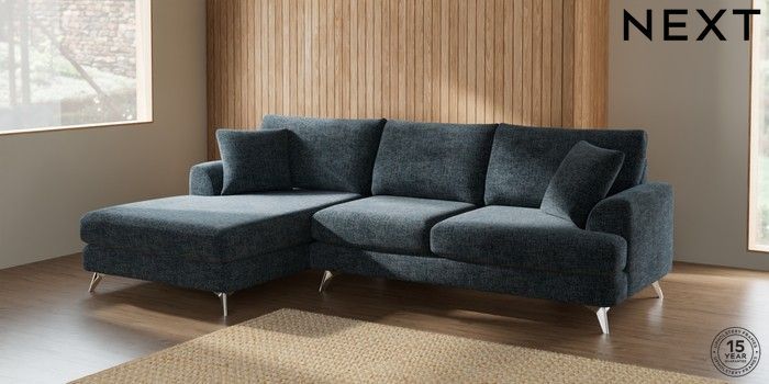 7.2.5 Buy Parker Large Sofa Chaise - Left Hand Chunky Chenille Dark Navy Blue High Metal - Chrome from the Next UK online shop Click here to use our accessible website