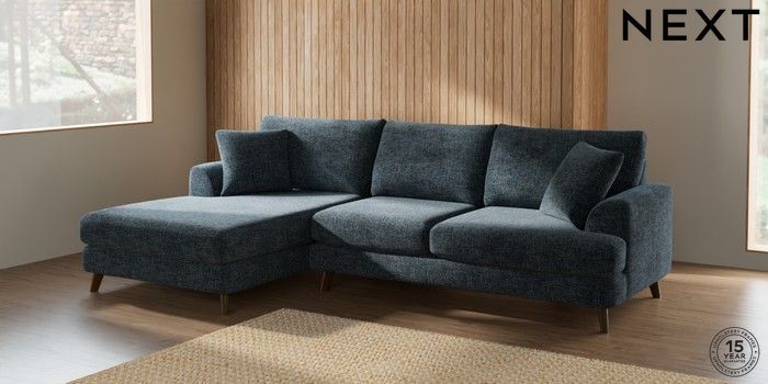 7.2.5 Buy Parker Large Sofa Chaise - Left Hand Chunky Chenille Dark Navy Blue Low Retro Tapered - Mid from the Next UK online shop Click here to use our accessible website