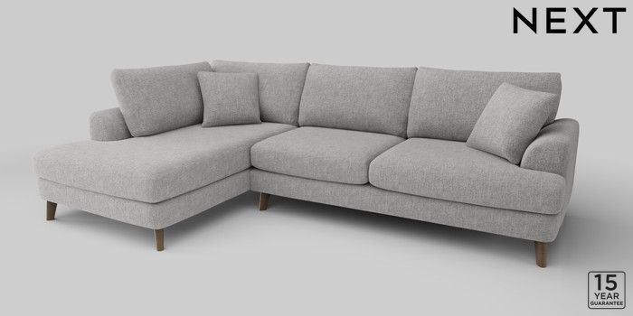 6.12.1 Buy Parker Large Corner Chaise - Left Hand Chunky Chenille Light Grey Low Retro Tapered - Mid from the Next UK online shop Click here to use our accessible website
