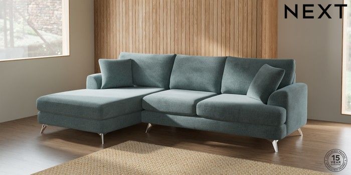 7.2.5 Buy Parker Large Sofa Chaise - Left Hand Chunky Chenille Light Teal Green High Metal - Chrome from the Next UK online shop Click here to use our accessible website