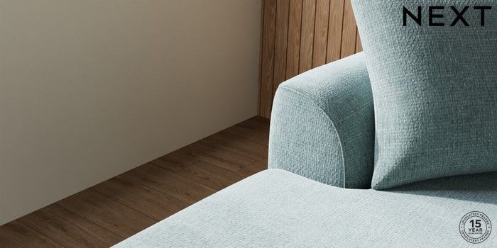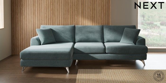 7.2.10 Buy Parker Large Sofa Chaise - Left Hand Chunky Chenille Light Teal Green High Metal - Chrome from the Next UK online shop Click here to use our accessible website
