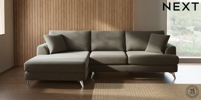 7.2.10 Buy Parker Large Sofa Chaise - Left Hand Chunky Marl Light Olive Green High Metal - Chrome from the Next UK online shop Click here to use our accessible website