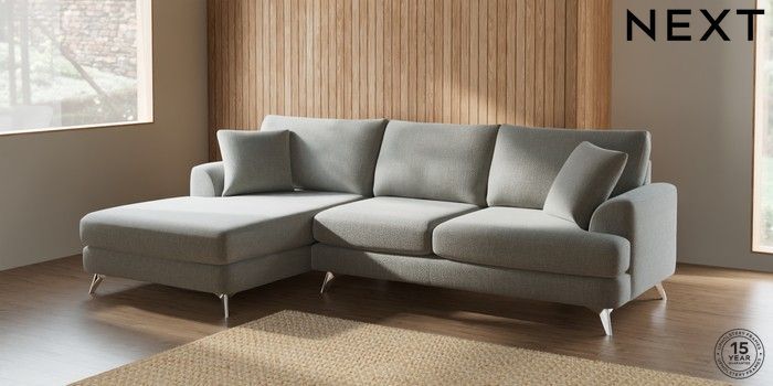 7.2.5 Buy Parker Large Sofa Chaise - Left Hand Chunky Texture Dove High Metal - Chrome from the Next UK online shop Click here to use our accessible website