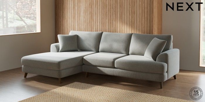 7.2.5 Buy Parker Large Sofa Chaise - Left Hand Chunky Texture Dove Low Retro Tapered - Mid from the Next UK online shop Click here to use our accessible website