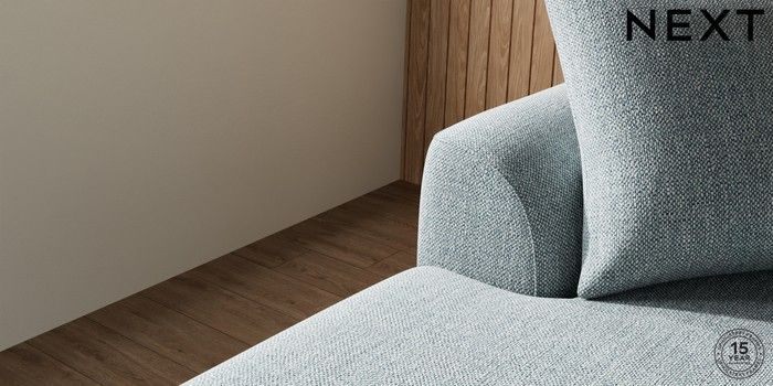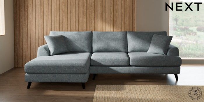 7.2.10 Buy Parker Large Sofa Chaise - Left Hand Chunky Weave Mid Blue Low Retro Tapered - Dark from the Next UK online shop Click here to use our accessible website