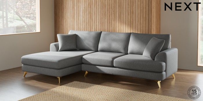 7.2.5 Buy Parker Large Sofa Chaise - Left Hand Chunky Weave Mid Grey High Metal - Brass from the Next UK online shop Click here to use our accessible website