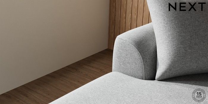 7.2.10 Buy Parker Large Sofa Chaise - Left Hand Chunky Weave Mid Grey Low Retro Tapered - Dark from the Next UK online shop Click here to use our accessible website