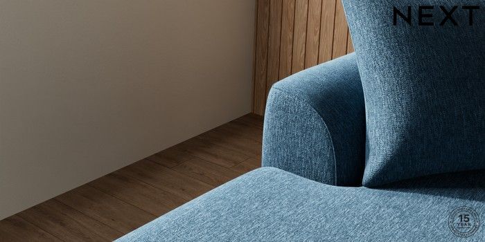 7.2.10 Buy Parker Large Sofa Chaise - Left Hand Cotswold Chenille Dark Blue Low Retro Tapered - Dark from the Next UK online shop Click here to use our accessible website