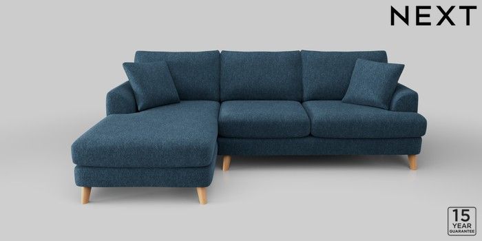 6.12.1 Buy Parker Large Sofa Chaise - Left Hand Cotswold Chenille Dark Blue Low Retro Tapered - Light from the Next UK online shop Click here to use our accessible website