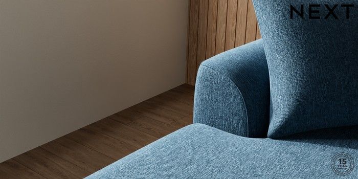 7.2.10 Buy Parker Large Sofa Chaise - Left Hand Cotswold Chenille Dark Blue Low Retro Tapered - Light from the Next UK online shop Click here to use our accessible website