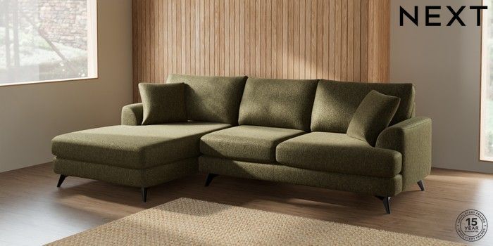 7.2.5 Buy Parker Large Sofa Chaise - Left Hand Cotswold Chenille Dark Green High Metal - Black from the Next UK online shop Click here to use our accessible website