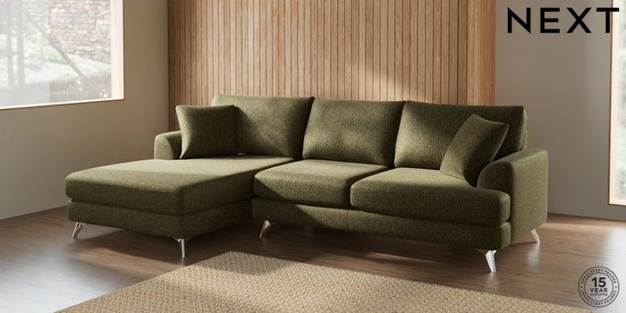 7.2.5 Buy Parker Large Sofa Chaise - Left Hand Cotswold Chenille Dark Green High Metal - Chrome from the Next UK online shop Click here to use our accessible website