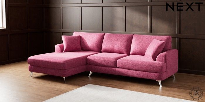 7.2.5 Buy Parker Large Sofa Chaise - Left Hand Cotswold Chenille Dark Raspberry Pink High Metal - Chrome from the Next UK online shop Click here to use our accessible website