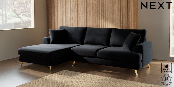 7.2.5 Buy Parker Large Sofa Chaise - Left Hand Fine Chenille Easy Clean Black High Metal - Brass from the Next UK online shop Click here to use our accessible website