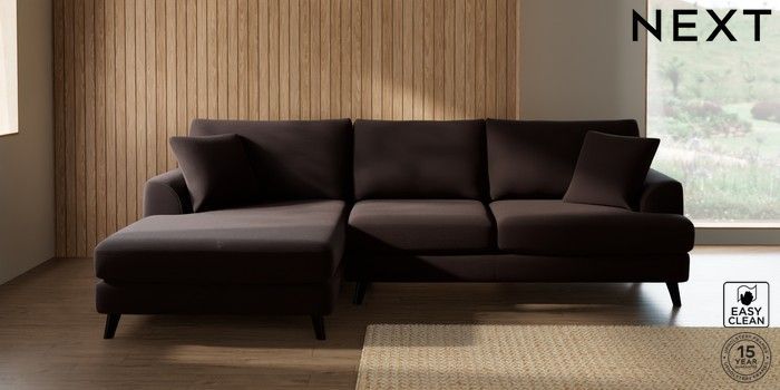 7.2.10 Buy Parker Large Sofa Chaise - Left Hand Fine Chenille Easy Clean Chocolate Brown Low Retro Tapered - Dark from the Next UK online shop Click here to use our accessible website