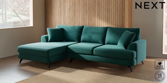 7.2.5 Buy Parker Large Sofa Chaise - Left Hand Fine Chenille Easy Clean Dark Juniper Green High Metal - Black from the Next UK online shop Click here to use our accessible website