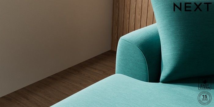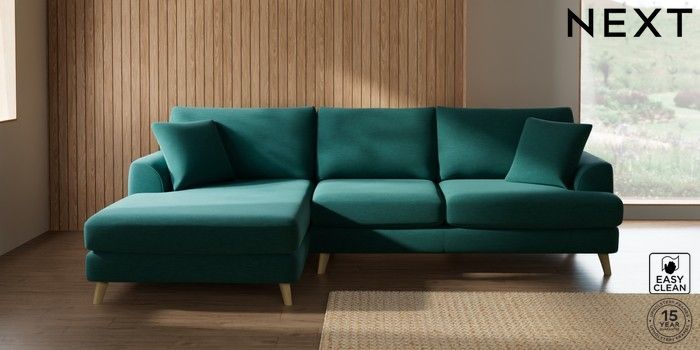 7.2.10 Buy Parker Large Sofa Chaise - Left Hand Fine Chenille Easy Clean Dark Juniper Green Low Retro Tapered - Light from the Next UK online shop Click here to use our accessible website