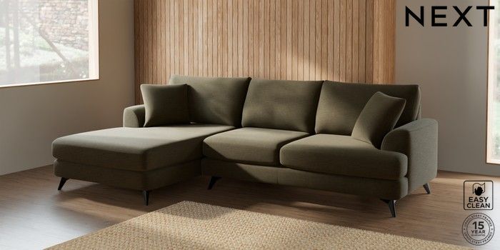 7.2.5 Buy Parker Large Sofa Chaise - Left Hand Fine Chenille Easy Clean Dark Moss Green High Metal - Black from the Next UK online shop Click here to use our accessible website
