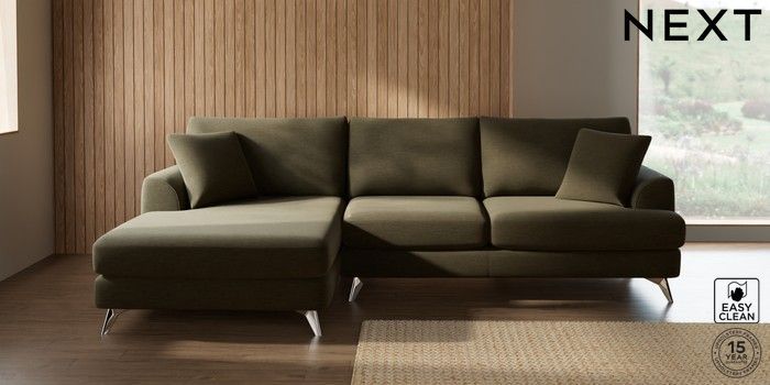 7.3.1 Buy Parker Large Sofa Chaise - Left Hand Fine Chenille Easy Clean Dark Moss Green High Metal - Chrome from the Next UK online shop Click here to use our accessible website