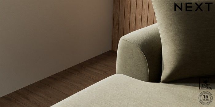 7.3.1 Buy Parker Large Sofa Chaise - Left Hand Fine Chenille Easy Clean Dark Moss Green Low Retro Tapered - Dark from the Next UK online shop Click here to use our accessible website