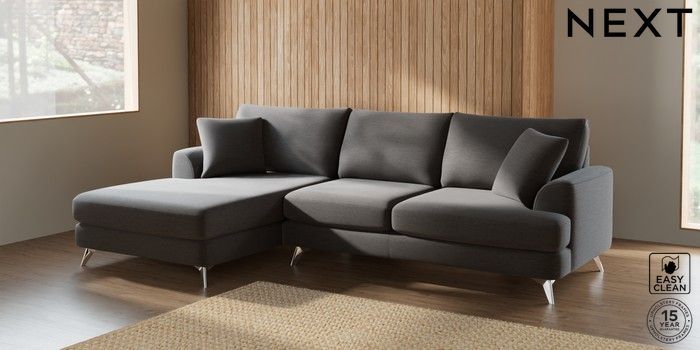 7.2.5 Buy Parker Large Sofa Chaise - Left Hand Fine Chenille Easy Clean Dark Smoke Grey High Metal - Chrome from the Next UK online shop Click here to use our accessible website