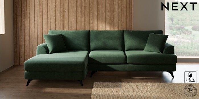 7.3.1 Buy Parker Large Sofa Chaise - Left Hand Fine Chenille Easy Clean Mid Khaki Green High Metal - Black from the Next UK online shop Click here to use our accessible website