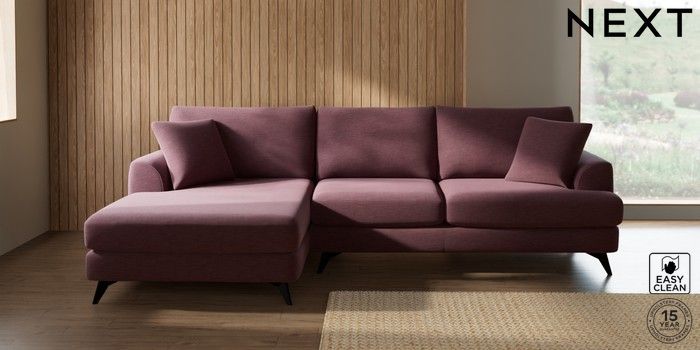7.3.1 Buy Parker Large Sofa Chaise - Left Hand Fine Chenille Easy Clean Mid Mulberry Purple High Metal - Black from the Next UK online shop Click here to use our accessible website