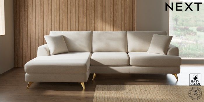 7.3.1 Buy Parker Large Sofa Chaise - Left Hand Fine Chenille Easy Clean Oyster High Metal - Brass from the Next UK online shop Click here to use our accessible website