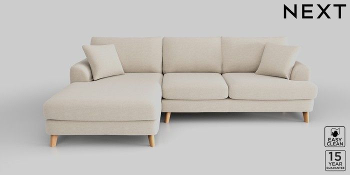 6.12.1 Buy Parker Large Sofa Chaise - Left Hand Fine Chenille Easy Clean Oyster Low Retro Tapered - Dark from the Next UK online shop Click here to use our accessible website