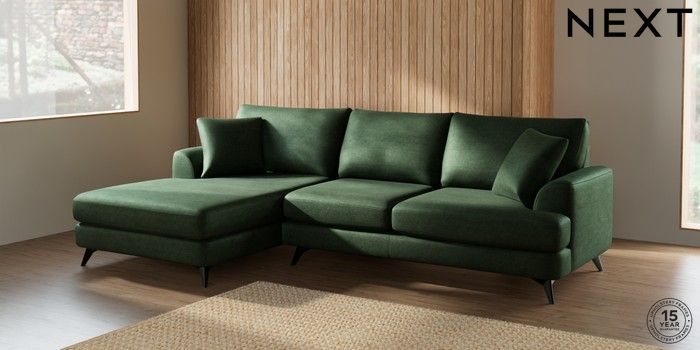 7.2.5 Buy Parker Large Sofa Chaise - Left Hand Luxe Chenille Dark Green High Metal - Black from the Next UK online shop Click here to use our accessible website