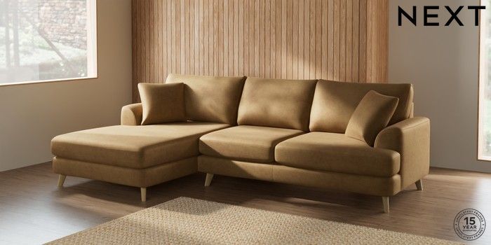 7.0.3 Buy Parker Large Sofa Chaise - Left Hand Luxe Chenille Honey Yellow Low Retro Tapered - Light from the Next UK online shop Click here to use our accessible website