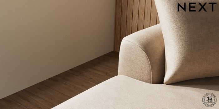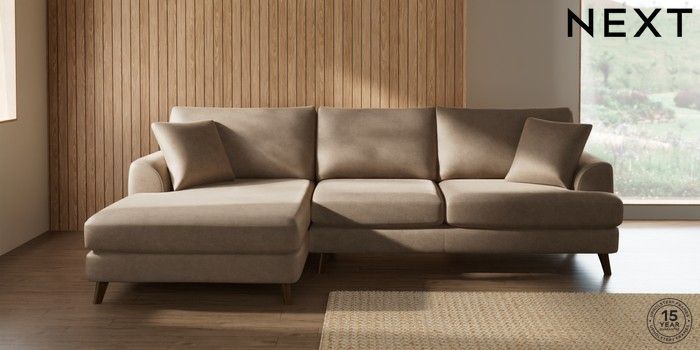 7.2.10 Buy Parker Large Sofa Chaise - Left Hand Luxe Chenille Mid Camel Beige Low Retro Tapered - Mid from the Next UK online shop Click here to use our accessible website