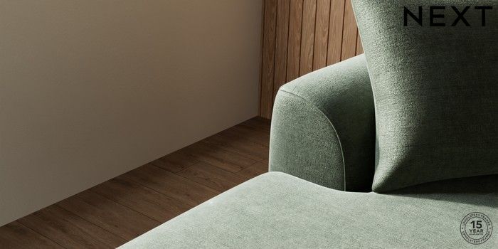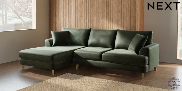 7.0.3 Buy Parker Large Sofa Chaise - Left Hand Luxe Chenille Mid Green Low Retro Tapered - Light from the Next UK online shop Click here to use our accessible website