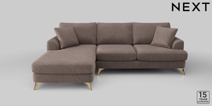 6.12.1 Buy Parker Large Sofa Chaise - Left Hand Luxe Chenille Mink Brown High Metal - Brass from the Next UK online shop Click here to use our accessible website