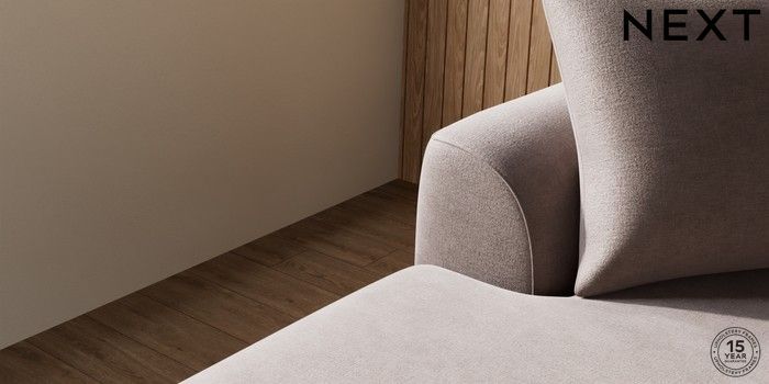 7.2.10 Buy Parker Large Sofa Chaise - Left Hand Luxe Chenille Mink Brown Low Retro Tapered - Mid from the Next UK online shop Click here to use our accessible website