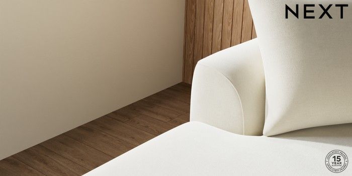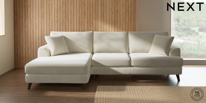 7.0.3 Buy Parker Large Sofa Chaise - Left Hand Luxe Chenille Oyster Low Retro Tapered - Mid from the Next UK online shop Click here to use our accessible website