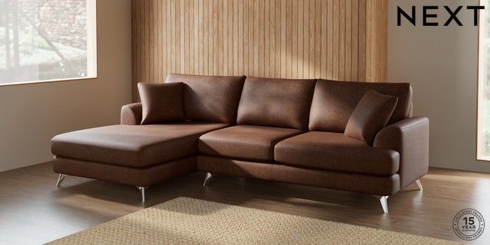 7.2.5 Buy Parker Large Sofa Chaise - Left Hand Monza Faux Leather Easy Clean Chestnut Brown High Metal - Chrome from the Next UK online shop Click here to use our accessible website