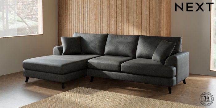 7.2.5 Buy Parker Large Sofa Chaise - Left Hand Monza Faux Leather Easy Clean Dark Grey Low Retro Tapered - Dark from the Next UK online shop Click here to use our accessible website