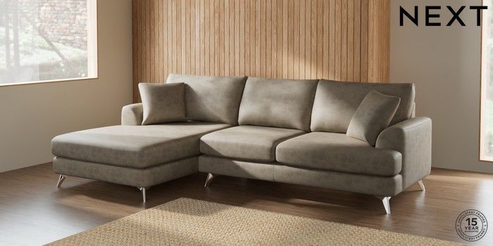 7.2.5 Buy Parker Large Sofa Chaise - Left Hand Monza Faux Leather Easy Clean Mink Brown High Metal - Chrome from the Next UK online shop Click here to use our accessible website